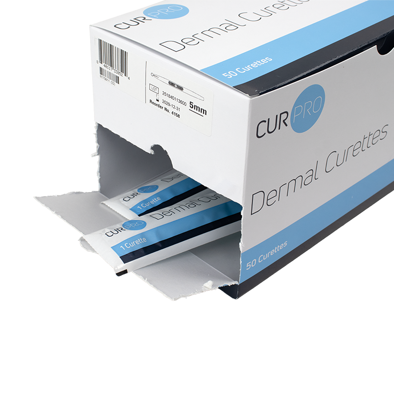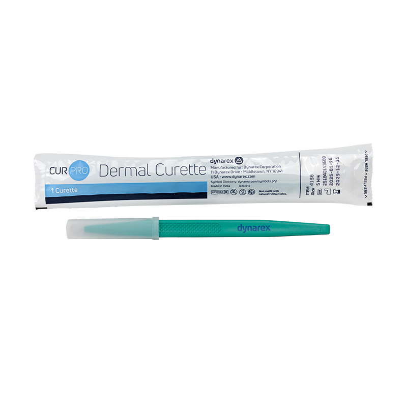 CurPro Dermal Curettes are engineered for precise and effective dermal curettage, making them ideal for a variety of routine procedures. Crafted from high-quality stainless steel, these curettes feature an extremely sharp, single-sided cutting edge for optimal performance. The ergonomically designed, textured handle provides a comfortable and secure grip, reducing hand fatigue during extended use. For added safety, each curette includes a rigid, closed-end translucent blade guard. Available in multiple sizes, the curettes are clearly marked for easy identification for optimal convenience in clinical settings.
