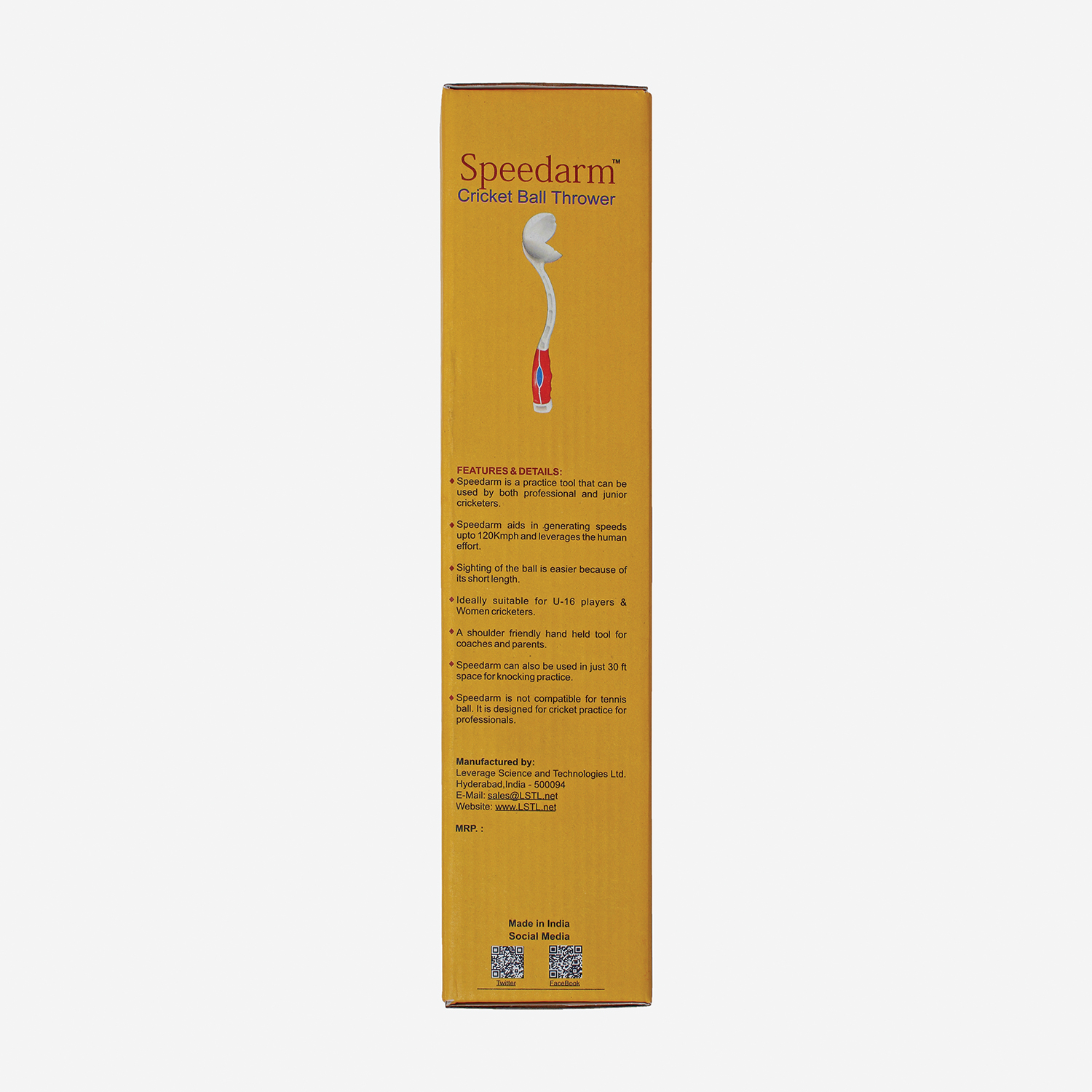 Kookaburra's Speed Arm is a revolutionary training tool used for cricket and fielding practice. It is an extended arm that generates raw pace, swinging and seaming deliveries in a controlled manner. The trajectory produced by the SpeedArm is natural to aid the batsman in picking up the ball easily from unnatural height. The finger like gripping and short handle with goose neck design ensures accuracy even for a first timer unlike other tools with large handles.