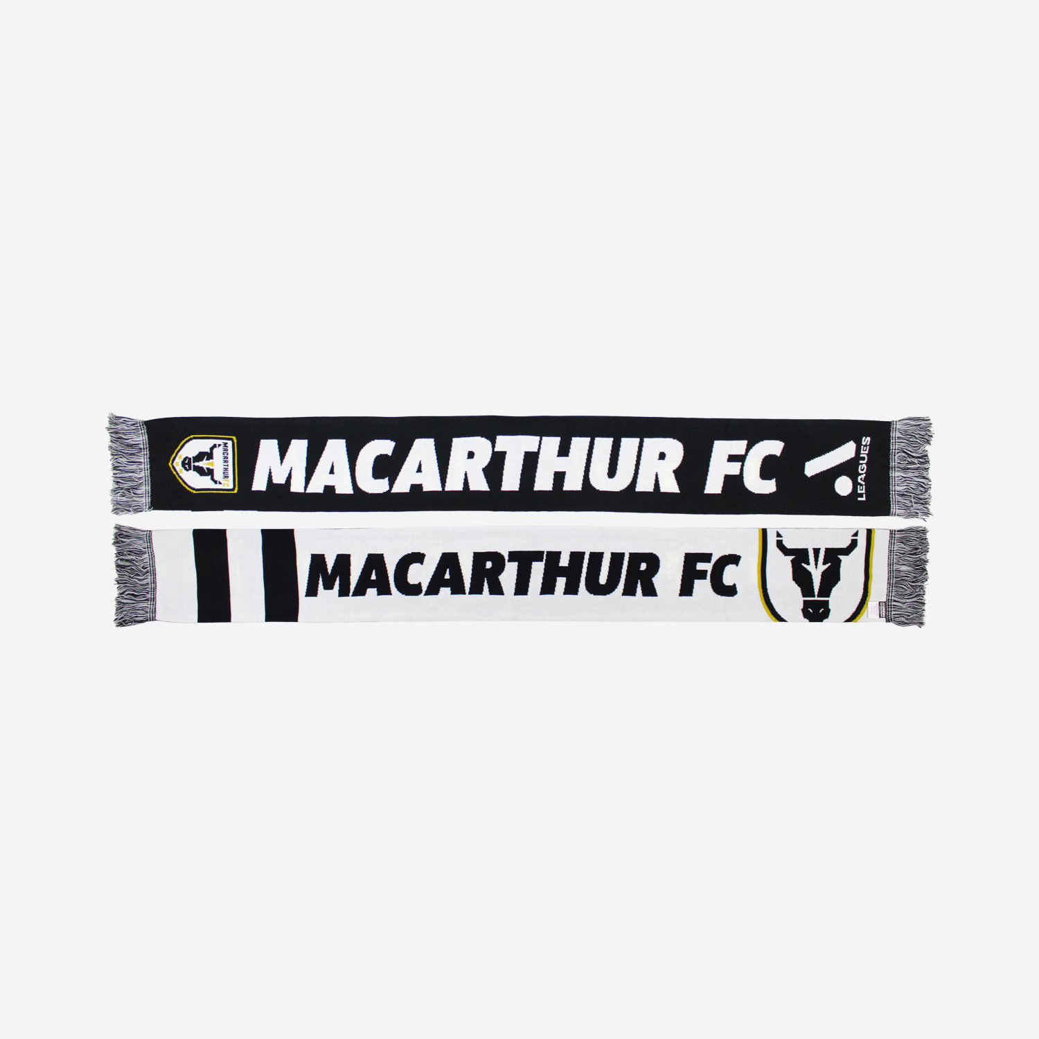 Passionate Mcarthur Fans can defend themselves from any cold fronts with Sekem's striking new jacquard scarf! The Defender Scarf features quality knitting, alternate side designs with distinct colourways, commanding primary team logos and clearly defined Macarthur FC team name to ensure everyone at the match knows who you're supporting.