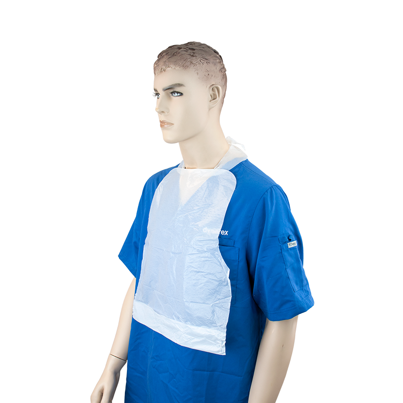 Dynarex Polyethylene Bibs are high-quality, disposable bibs designed for optimal protection and convenience in medical environments, long-term care facilities, and home settings. Constructed from durable polyethylene plastic, these bibs offer reliable coverage while helping to contain spills and debris. Each bib is designed with a built-in crumb-catching pocket for easy cleanup, enhancing hygiene and efficiency.