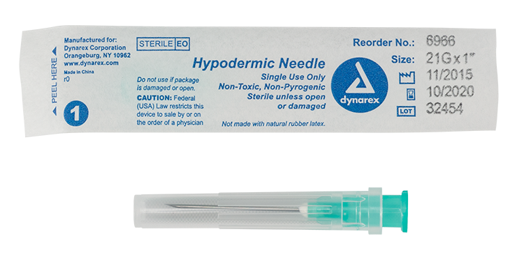 Dynarex Hypodermic Needles are sterile, thin-wall needles designed to safely and comfortably administer medication or draw blood. The Needles feature a color-coded needle hub for quick identification of the needle gauge.