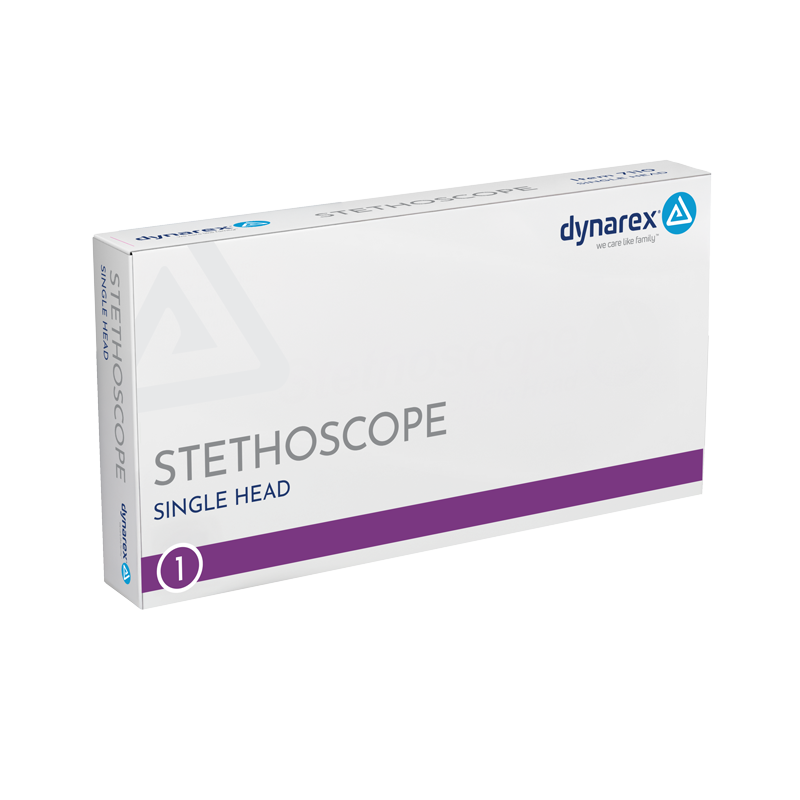 Dynarex Single, Dual, and Sprague Stethoscopes are designed for the reliable detection of bodily sounds during patient assessments. Each stethoscope features a high-quality anodized aluminum chest piece with a non-chill ring for improved patient comfort. Molded ear tips and thick tubing minimize background noise for greater acoustic clarity.