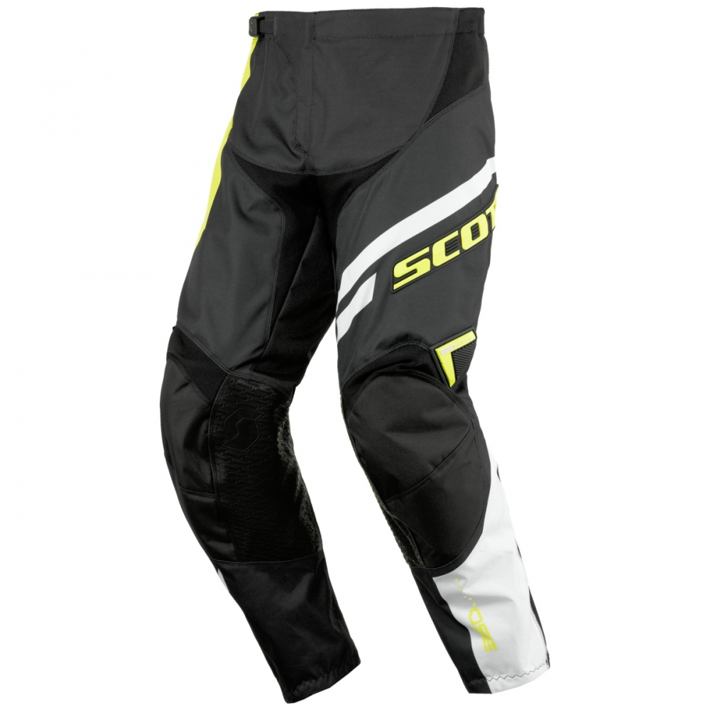 The SCOTT 350 kids pant combines tough construction with stretch and vent panels for comfort no matter how intense the race gets. It features leather inner knee areas for added durability as well as ribbed spandex in the knees to accommodate knee braces.