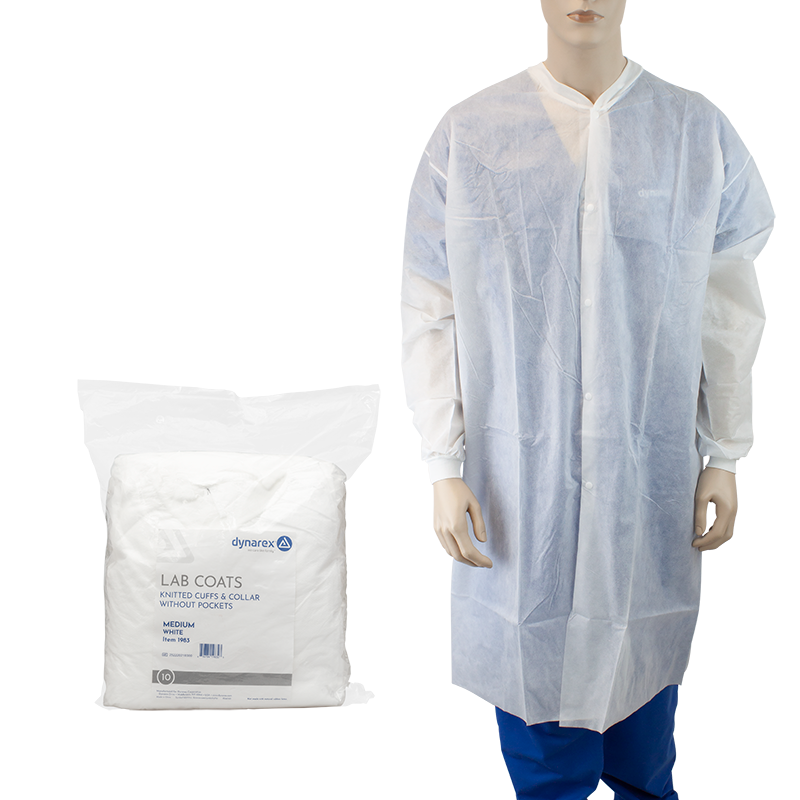 Dynarex Disposable Lab Coats are designed to protect skin and clothes from light dirt, splashes, and spills. Constructed from breathable polypropylene material, these high-quality garments provide a comfortable, non-constricting fit over everyday clothing.
