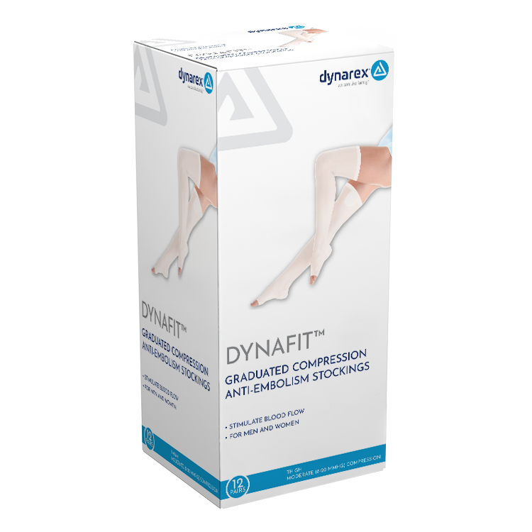 Dynarex DynaFit Compression Stockings are graduated anti-embolism stockings gently squeeze the leg and ankle. They help improve blood flow, decrease pain, and help manage swelling. Available in multiple sizes to meet the needs of facilities and patients alike.