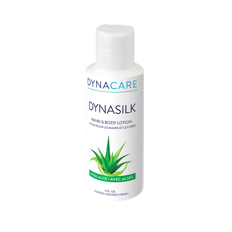 DynaSilk with Aloe Hand & Body Lotion is formulated with aloe vera to help moisturize dry skin.