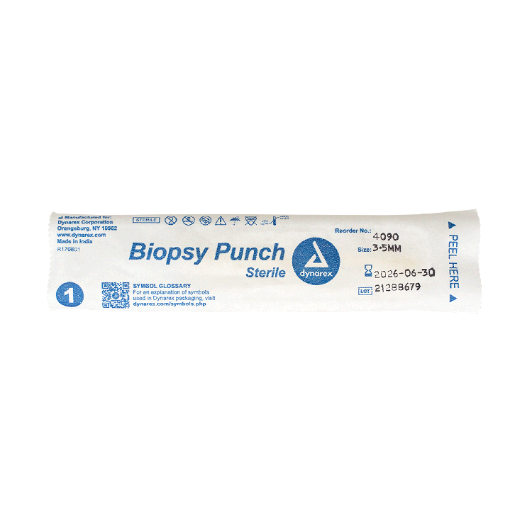 Dynarex Biopsy Punches feature a seamless stainless-steel blade with a durable, ribbed handle, designed to provide greater comfort and control when obtaining tissue samples.