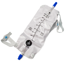 Sterile Urinary Leg Bags maintain a low profile as they rest discreetly against the leg with soft, pleated sides.