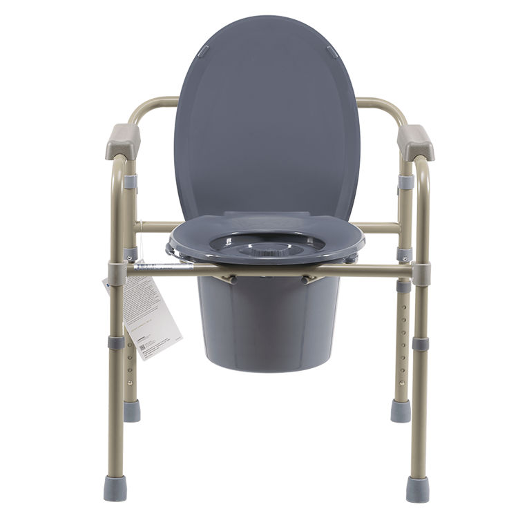 The Dynarex Elongated Folding Bedside Commode has three versatile functions and can easily open and fold flat. It can be configured as a commode, raised toilet seat or a toilet safety frame over your current toilet. The Bedside Commode features a tool-free removable back, durable elongated snap on seat for a deeper seat depth and comes complete with drop-in commode bucket with handle and splash guard.