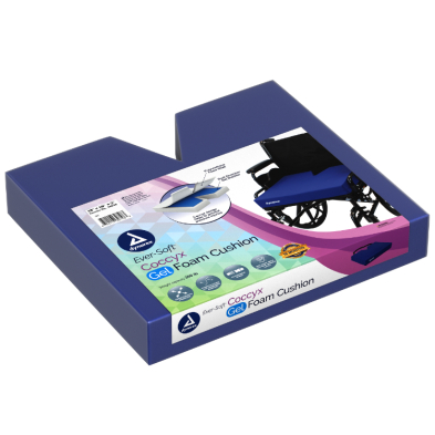 The Dynarex Ever-Soft Gel Foam Coccyx Cushion is a high-density foam wheelchair cushion with an embedded dual-chamber gel-pod designed to help prevent and manage pressure injuries in wheelchair-bound patients. The contoured design reduces pressure from the coccyx, a high impact area prone to pressure wounds.