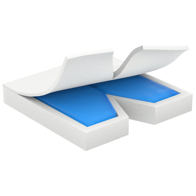 • Gel layer provides added comfort, support, and cooling relief