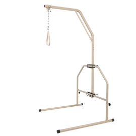 The Dynarex LTC Trapeze Bar with Stand is an overhead pull-up device designed to help patients shift positions in bed. Its durable steel construction features a two-piece design, tool-free assembly, an adjustable chain, and adjustable bar height. Ideal for hospitals, rehabilitation facilities