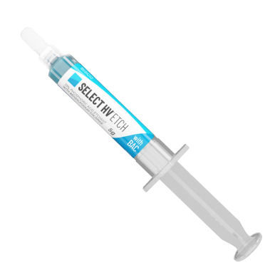 SELECT HV ETCH is a 35% high-viscosity phosphoric acid etchant with BAC (Benzalkonium Chloride). It is specifically formulated for pin-point placement to etch enamel.