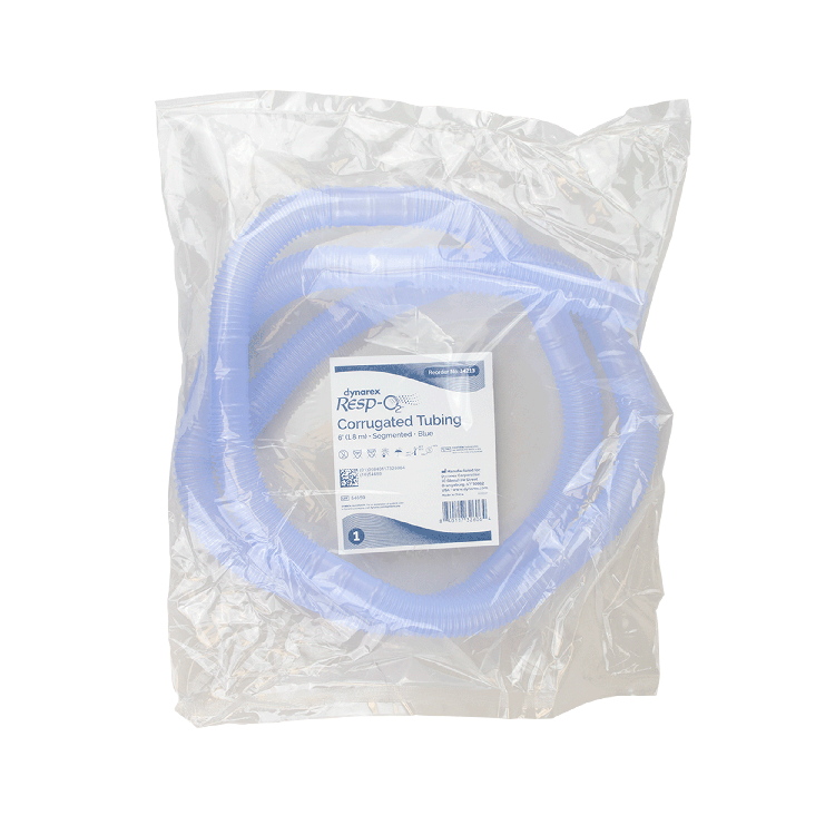 Dynarex Resp-O2™ Corrugated Tubing is premium-quality tubing designed to help deliver aerosol and IPPB therapy safely and effectively to respiratory patients. The lightweight, flexible Tubing features tapered cuffs for secure connections to standard adapters and is segmented every 6 inches to allow for easy cutting and sizing.
