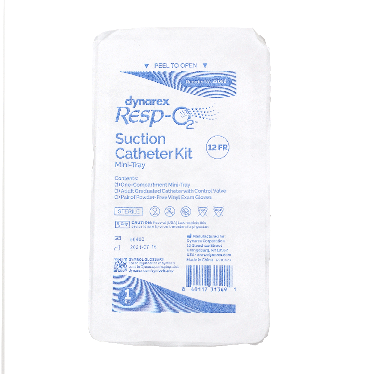 Dynarex Resp-02™ Open Suction Catheters Mini-Kits are designed to safely and effectively remove secretions from the respiratory tracts of tracheostomy patients. The soft, flexible catheter with beveled tip is gentle on delicate mucosal tissue yet firm enough to allow for catheter rotation. The catheter includes a vented cap control valve for enhanced suction control and features two eyelet openings for increased suctioning effectiveness with minimal patient trauma. Each Kit also features a mini-tray to hold irrigation solutions and a pair of powder-free vinyl exam gloves.