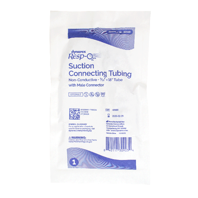 Dynarex Resp-O2™ Suction Connecting Tubing is designed to provide secure connections to both portable and in-wall suction sources. This non-conductive Tubing features female connectors on both ends and includes an optional male (straw) adapter for additional attachments.