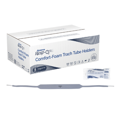 The Dynarex Resp-O2 Comfort Foam Trach Tube Holder is designed to hold a tracheostomy tube securely in place to help stabilize the tube and ensure uninterrupted airflow. The Trach Tube Holder fastens securely with hook-and-loop closures and features soft, Comfort-Foam padding to help keep skin dry and promote optimal patient comfort.