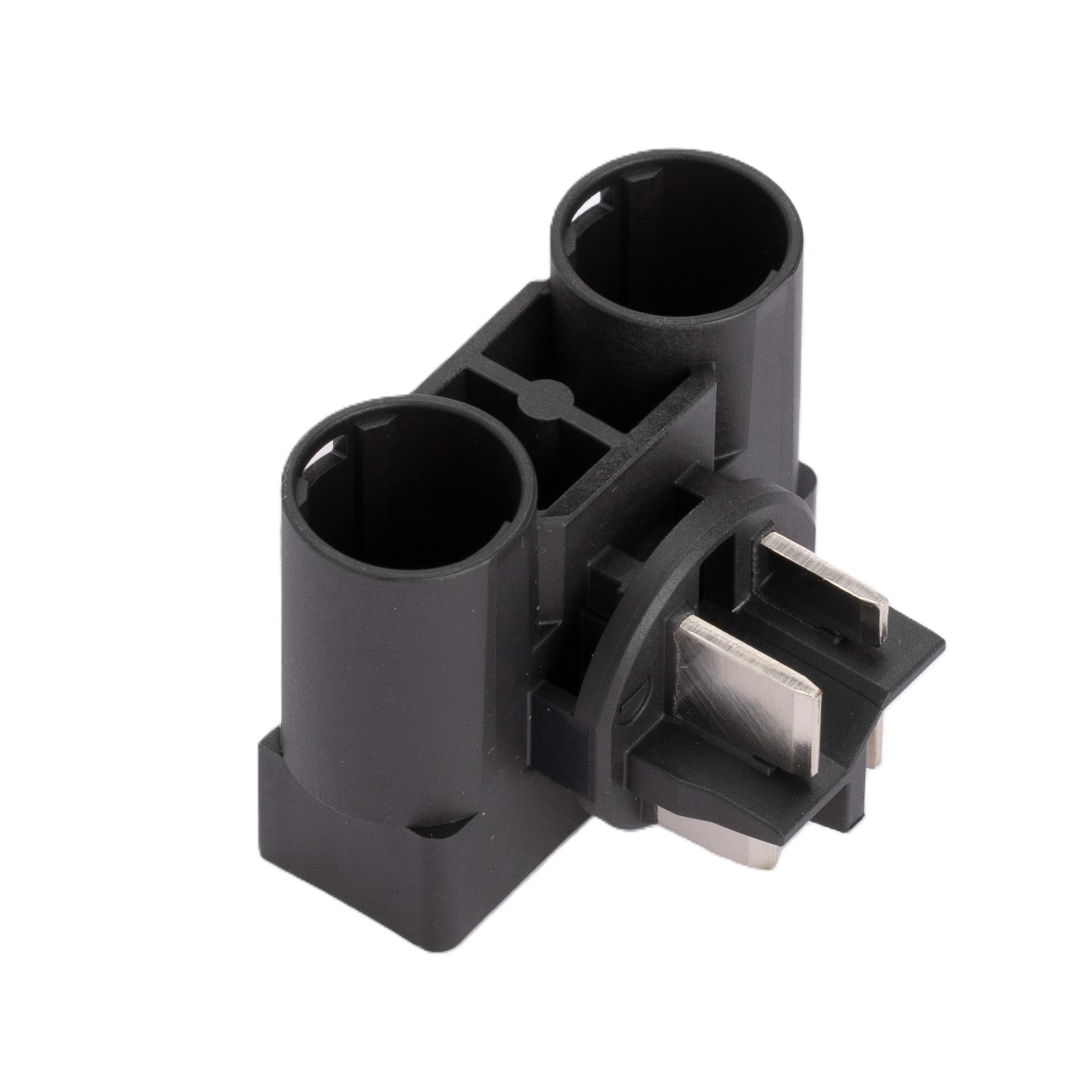 The Bosch battery adapter 2 (BAD2) is used to connect the battery to your e-bike. For this purpose, the adapter has two connection sockets, one for the battery cable to the motor and a second for the charging socket cable. The Bosch PowerTube 2-fold adapter is already factory-installed in many Bosch e-bikes with Smart System and PowerTube battery. However, the battery adapter 2 can also be installed on e-bikes with a PowerPack frame battery. Which battery connection you need depends on the position of your charging socket. If it is integrated into the frame of your e-bike, you will need this 2-fold adapter. If, on the other hand, the charging socket is located directly on the battery mount, you will need the battery adapter 1 (BAD1).